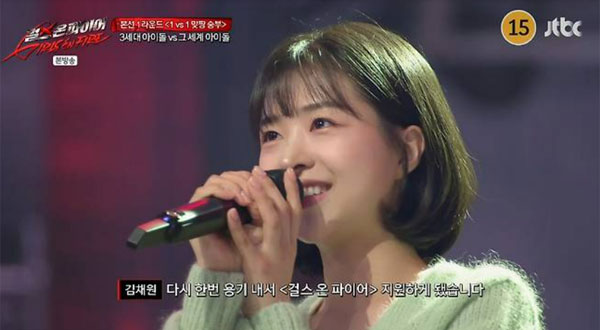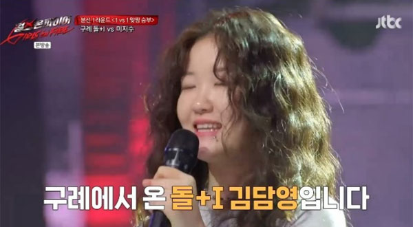 그런 선입견을 잘 알고 있다는 듯이, <걸스 온 파이어>는 첫방부터 1대1 맞짱승부를 통해 이 오디션이 그런 뻔한 걸그룹 오디션과는 완전히 다르다는 걸 보여줬다. 스스로를 구례에서 올라온 ‘돌+I’라고 소개한 김담영이 연 첫 무대부터가 달랐다. 그의 무대는 마치 한영애가 시간을 되돌려 소녀가 되어 부르는 것처럼 자유분방하면서도 만만찮은 노래실력을 바탕으로 하고 있었다.