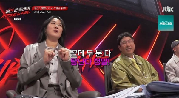 3세대 아이돌 에이프릴의 메인보컬 출신 김채원과 맞붙었던, ‘그세계 아이돌’ 이송화의 무대도 충격 그 자체였다. 세계 최초 K팝 AI 아이돌 ‘이터니티’로 데뷔해 ‘얼굴없는 가수’로 활동해온 이송화는 레드벨벳의 ‘몬스터’라는 곡을 진짜 괴물의 탄생을 알리는 듯한 무대로 소화해냈다. 사이버 세상에 더 이상 머물지 말고 밖으로 나와달라는 MC 장도연의 재치 있는 멘트가 공감가는 실력자였다.