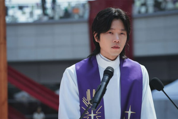 웅천이라는 가상의 소도시를 배경으로 펼쳐지는 <종말의 바보>는 네 명의 인물을 중심에 두고 그 주변인물들의 다양한 이야기들을 그려간다. 친구들이지만 이제 저마다의 위치에 서 있는 네 명은 교사인 진세경(안은진), 그의 약혼자이자 연구원인 하윤상(유아인), 그 동네의 정신적 지주 역할을 하는 신부 우성재(전성우) 그리고 부재한 치안을 대리하는 군인 강인아(김윤혜)다. 인물의 직업인 교사, 연구원, 신부, 군인으로 알 수 있듯이, 이들이 종말에 즈음해 어떤 삶을 선택해 살아가는가가 이 드라마의 중요한 서사다.
