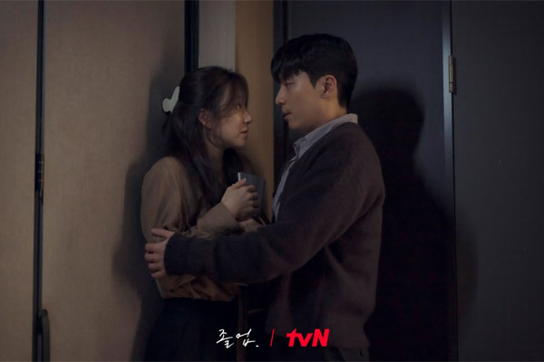 그렇지만 <졸업>은 이 팽팽한 긴장감을 유발하는 대치동 학원가의 생존경쟁과 더불어, 그 긴장을 순간순간 풀어내는 서혜진과 이준호의 설렘 가득한 멜로 역시 본격화했다. 광고가 나가기 전까지 보안을 지키기 위해 비밀스럽게 두 사람이 강의를 준비할 때, 갑자기 회사로 다시 돌아온 남청미의 눈을 피하기 위해 함께 숨는 모습은 사제나 동료의 관계를 넘어 무언가 사적인 관계의 설렘을 유발했다.