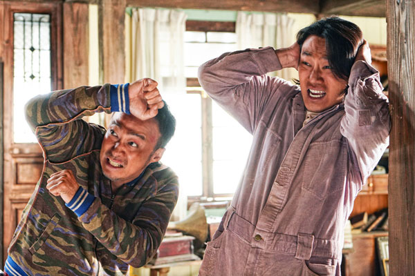 그 예감은 영화를 보면 적중한다. 살벌한 인상과는 달리 너무나 순박하고 착한 재필(이성민)과 상구(이희준)는 그 강렬한 얼굴을 과장될 정도로 무섭게 드러내는 것으로 먼저 웃음을 만들어낸다. 마치 귀신의 집에 들어가서 오금이 저려 쩔쩔 매는 사람들을 보며 웃게 되는 전형적인 코미디가 펼쳐진다.