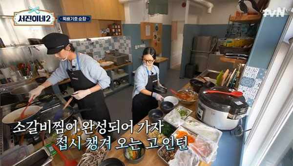 이미 <서진이네> 시즌1에서도 박서준이 맡은 주방이 팽팽 돌아갔던 걸 우리는 경험한 바 있다. 아무래도 <이태원 클라쓰>를 찍으면서 박새로이가 도전했던 단밤이라는 포차를 운영하는 역할을 연기하면서 박서준 또한 주방이 익숙해졌을 터다. 박새로이의 마인드가 장착된 듯한 박서준의 주방에서의 모습은 그래서 프로의 느낌이 묻어난다. 조리를 하는 과정 자체가 물 흐르듯 자연스럽다.