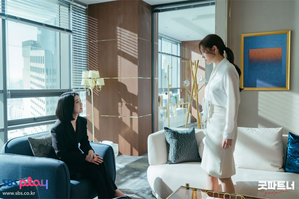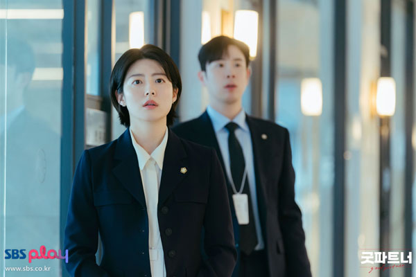 그렇다고 <굿파트너>에 기존의 식상한 법조인 캐릭터나 법정물을 가장한 치정물의 요소가 아예 없는 건 아니다. 사실 한유리와 차은경의 성격 대비는 전형적인 정의로운 인물과 속물적인 인물의 대립각 구도이긴 하다. 하지만 <굿파트너>는 영리하게도, 변호사 차은경의 대사처럼 이 두 캐릭터의 성격들이 선을 넘지 않도록 주의하는 데 공을 들인다.
