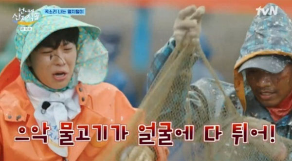 황정민의 그런 시끌벅적한 등장은 그러나 금세 노동에만 열중하는 <언니네 산지직송>의 분위기 속에서 사그라들었다. 첫째 날 바다로 나가 멸치털이를 하게 된 출연자들은 일찌감치 이 프로그램의 색깔이 ‘노동’ 그 자체 맞춰져 있다는 걸 알아차렸다. 메이크업에 예쁜 차림을 하고 가 봐야 멸치털이 몇 번 하고 나면 얼굴은 물론이고 온몸이 땀과 멸치들로 뒤범벅되는 그런 상황이라는 걸.