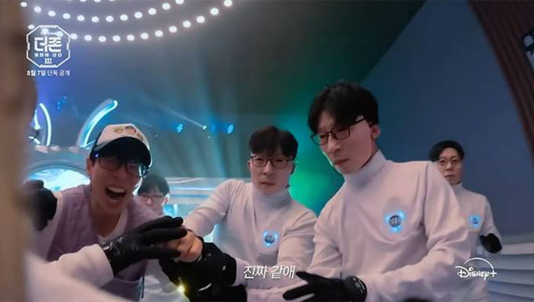 [엔터미디어=정덕현] 문이 열리고 들어선 곳에 갑자기 여러 사람들이 등장한다. 그런데 놀랍게도 모두가 똑같은 얼굴이다. 바로 유재석. 안내방송에는 유재석의 목소리가 계속 흘러나오고, 유재석의 얼굴을 가진 AI들이 출연자들을 공격한다. 다시 돌아온 디즈니 플러스 오리지널 예능 <더 존: 버텨야 산다3(이하 더 존3)>가 새롭게 선보이는 ‘존버’ 상황이다.
