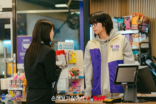 그런데 이 멜로의 남자 주인공인 김지욱(김영대)은 손해영과는 정반대의 캐릭터다. 누군가에게 피해를 주는 걸 못견뎌 하고, 나아가 도움을 주지 못하는 것도 참지 못한다. 그래서 동네에서는 의인이지만, 때론 융통성 있게 넘어가야 잘 살 수 있는 사회생활에서는 어딘가 손해보는 인물이다. 면접장에서 성차별적 발언을 하는 면접관에게 대놓고 그걸 문제삼는 인물이니.