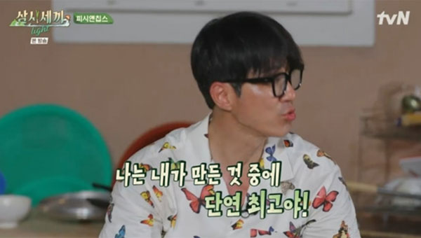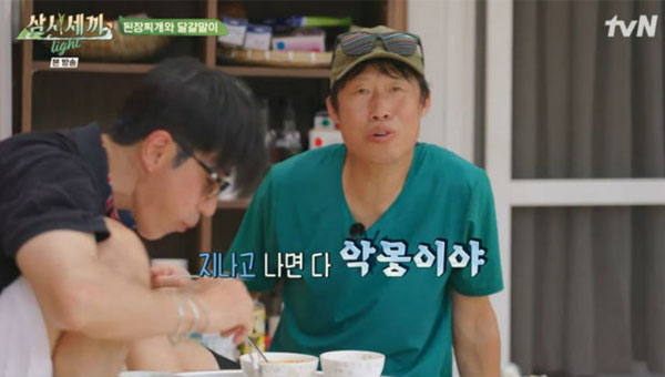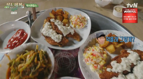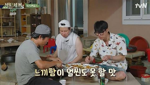 tvN 예능 <삼시세끼 light>가 보여주는 끼니의 풍경은 이처럼 한결같다. 물론 가끔은 바다에서 참치 같은 힘을 가진 부시리를 ‘노인과 바다’의 한 장면처럼 낚아와 포를 뜨고 감자까지 튀겨낸 호사스런 ‘피시앤칩스’가 한 상 차려지기도 하지만, 그런 호사스러움에서 느끼할 것 같다며 열무비빔밥을 ‘반찬’으로 더해넣는 촌스러운 맛을 잃지 않는다. 대단할 것 없는 끼니들이 하루 세 끼씩 채워지고 그게 <삼시세끼>라는 프로그램을 만든다. 음식을 먹고 우리의 몸이 만들어지듯.