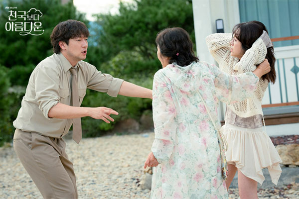이처럼 <천국보다 아름다운>은 역설의 드라마다. 천국의 이야기를 하고 있지만 현생이 계속 떠오르고, 죽음을 이야기하지만 삶이 떠오른다. 죽음이라는 비극을 말하고 있는 것이지만, 죽음 이후에 계속 이어지는 삶의 희극이 담겨 있다. 본래 희극과 비극은 원근의 차이일 뿐이라던가. <천국보다 아름다운>은 그래서 슬픈데도 웃기고 웃기다가도 슬픈 기묘한 희비극의 풍경들을 펼쳐 놓는다.