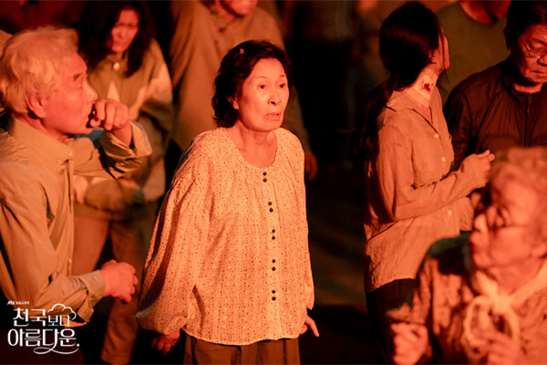 천국으로 간 해숙(김혜숙)이 그곳에서 남편 낙준(손석구)을 만나 벌어지는 일들을 그리던 <천국보다 아름다운>에서 갑자기 지옥의 풍경이 펼쳐진 건 해숙이 천국에서 잘못을 저질러 그곳에 떨어지게 되면서다. 해숙은 어느 지옥으로 갈지 정해지는 심사대에서 ‘미분류’가 되어 다시 죄의 무게를 달아 보고 결국 천국으로 돌아오게 되지만, 그 과정에서 지옥의 끔찍한 광경들이 스펙터클하게 펼쳐진다.