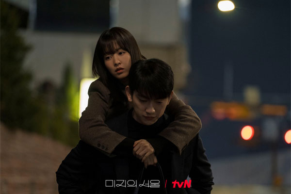 <미지의 서울>은 일란성 쌍둥이인 미지와 미래가 서로의 삶을 바꿔 살아보게 되면서 벌어지는 사건을 다룬 작품이다. 자신을 챙겨줬던 선배가 회사 내 비리를 폭로해 왕따를 당하자 사내고발을 한 후 직장 내 괴롭힘에 죽고 싶을 정도로 절망의 끝에 서 있던 미래였다. 멘탈 강하고 씩씩한 미지가 미래와 삶을 바꿔 살아보기로 한 것이고, 그래서 그들은 서로 다른 삶 속으로 들어가게 된다. 이 설정은 그다지 현실성 있는 이야기는 아니지만, 이 판타지를 통해 드라마가 보여주려는 건 분명하다. 타인의 삶 속에 들어가 발견하게 되는 진심을 보여주려는 것이고, 그 진심을 얼마나 막 대하고 심지어 이용하려는 무례한 세상을 말하기 위함이다.