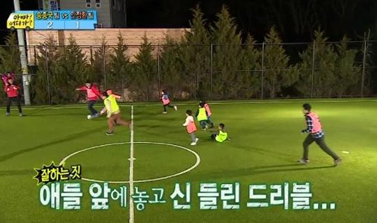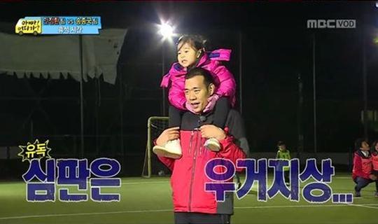 또 아이들과 아빠들이 함께 축구 경기를 벌이는 장면에서도 마찬가지다. 승부욕을 보이며 아이들 사이를 종횡무진 뛰어다니는 송종국과 안정환의 모습이 더 눈에 띄었고 대신 아이들은 잘 보이지 않았다. 또 아이템이 축구여서인지 아이들 중에서도 지욱과 리환이가 돋보였고 성격 좋고 붙임성 좋은 찬형이 지아와 잠깐 노는 장면이 주목되었을 뿐, 다른 아이들의 존재감은 별로 보이지 않았다. 특히 김진표와 규원이는 방송 분량이 거의 없었다.