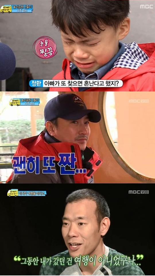 [엔터미디어=이만수 기자] “아빠 또 찾으면 그 땐 혼나 진짜.” 아들 리환이에게 으름장을 놓는 안정환의 마음은 얼마나 짠했을까. 놀이공원을 찾은 MBC <일밤-아빠 어디가 시즌2>에서 단연 주목을 끈 아이는 리환이었다. 강하게 키우려 하는 아빠와 처음 겪는 것들이 유독 낯설고 두려운 아이. 리환의 눈에서 닭똥 같은 눈물이 뚝뚝 떨어지는 걸 보며 겉으로는 엄하게 꾸짖으면서도 멀리서 안타깝게 아이를 바라보는 안정환에게서 깊은 공감이 느껴졌다.