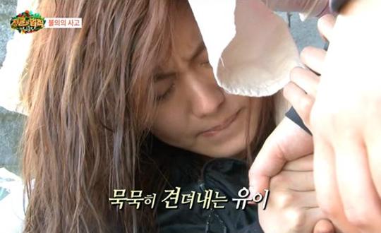 Z자로 찢어진 머리를 부여잡고 피를 흘리는 유이를 보며 김병만과 병만족은 모두 할 말을 잃었다. 긴급 봉합수술을 받고 나선 인터뷰에서 유이는 “물이 덮쳤고 몸이 뜨는 기분이 났다”며 “돌이랑 부딪히는 순간” 들려온 오빠들 소리가 순간 다행이라는 느낌이었다고 당시 아찔한 상황을 설명했다.