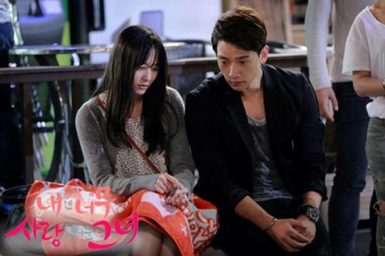 <내 그녀>는 음악을 소재로 다루고 있지만 사실 음악의 묘미가 느껴지지 않는다. 작곡가를 꿈꾸는 윤세나(크리스탈)가 피아노 앞에서 연주를 하고 노래를 할 때 그것이 이현욱(비)에게는 과거 사고로 잃은 옛사랑의 노래로 오버랩되지만, 단지 장면만 그렇게 보여질 뿐 그것이 주는 애절함 같은 것들이 전혀 느껴지질 않는다. AnA라는 기획사가 그려내는 아이돌의 이야기는 지나치게 스테레오타입에 머물러 있고 그 안에서 벌어지는 갈등 또한 틀에 박힌 신데렐라 이야기의 변주로밖에 여겨지지 않는다.