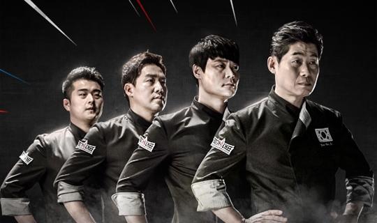 그런데 <쿡가대표>는 이런 예상을 무너뜨렸다. 물론, 예전처럼 화제를 불러일으키진 못하지만 떠나려는 발걸음을 다시 붙잡았다. <냉장고를 부탁해>와 셰프, 15분 요리 대결, 김성주와 안정환의 다이나믹 듀오까지 모든 것이 같다. 그런데 새로운 환경과 더 높은 레벨의 생소한 셰프들과의 대진은 한층 더 긴장감 있는 요리 대결을 만들어냈다. <냉장고를 부탁해>를 지탱하던 대결구도의 날이 무뎌진 마당에 아예 더 높은 수준의 상대를 찾아가 스포츠 중계와 결합한 요리쇼를 펼치는 것이다. 그러다보니 감자탕을 푸지게 먹고도 입가심할 디저트 먹을 배는 따로 있는 것처럼 다시 먹게 됐다. 포인트는 또 다른 볼거리가 아니라 더 높은 상대, 더 어려운 조건, 국가 대항전이란 훨씬 더 무게감이 실린 ‘대결’이다.