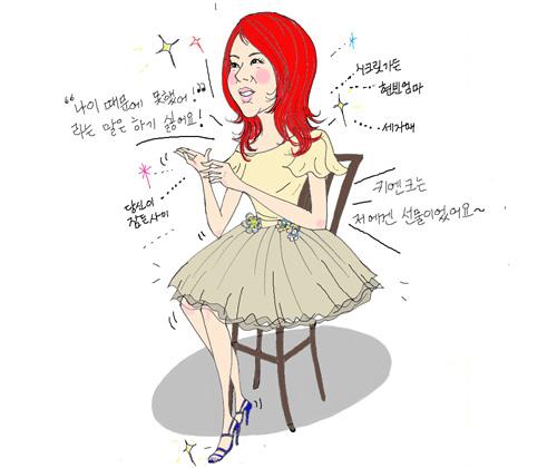 하늘거리는 발레리나 풍 연보라색 치마에 꽃으로 장식된 허리끈을 맵시 있게 두르고 인터뷰 장소에 나온 박준금 씨. 배우의 자기관리라는 게 이런 것일까? 도무지 50대의 피부와 몸매가 아니다! 사랑스러운 소녀 감성으로 인터뷰 내내 유쾌했던 그 현장을 사진으로 남기지 못했다는 사실이 그저 안타까울 뿐이다. 그냥 흘려보내기는 아쉬웠던 그 날의 예쁜 모습을 다행히 현장에 있던 일러스트레이터가 그림으로나마 전할 수 있어 기쁘게 생각한다.