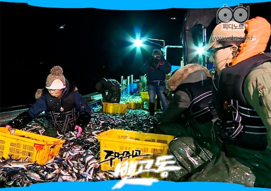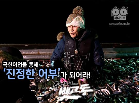 안 그래도 볼거리의 매력이 낮은데 노동과 예능적 장치들이 자연스럽게 연결되지 않는다. <정글의 법칙>에서 펼쳐지는 모든 이야기는 생존을 하기 위한 과정이다. 그러나 <주먹 쥐고 뱃고동>은 순전히 프로그램을 위해 뱃일을 나가는 것이 아니라, 조업 현장에 깍두기처럼 투입되는 조건이다. 따라서 조업을 돕는 상황에서 자기들만의 미션에 몰두한다든가 리얼 버라이어티의 핵심인 캐릭터들의 관계를 집중하는 촬영 환경을 갖추기 어렵다. 함께 무언가를 완수하며 성장하는 스토리를 만들어내기에 제약이 많다. 그 때문에 방송은 극한 노동이 중심이 되어야 함에도 쿡방과 먹방과 복불복 퀴즈쇼 등으로 파편화된 볼거리를 따로 따로 나열한다. 이를 엮어주는 것이 <자산어보>지만 시청자들을 설득하기엔 너무나 부족한 연결고리다.