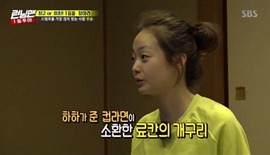 전소민은 순수한데 배짱이 좋다. 베테랑 선배들에게 늘 당하면서도 예능판에 주눅 들지 않는다. 미션 초반부터 미숙한 계산으로 엉성한 수 싸움이 들통 나지만 당당하다. 전율미궁에서는 또 난리법석을 부린다. 그럼으로써 <런닝맨>의 흐름과 공식을 뒤헝큰다. 지난주처럼 미션 실패로 탕수육을 못 먹는 상황에서 소스에 들어 있는 오이라도 먹게 해달라고 부탁하고, 여배우임에도 민낯을 가리는 일이 없다. 방송의 흐름이나 전개를 잘 모르지만 신경 쓰지 않는 것이 캐릭터가 된 특별한 케이스다.