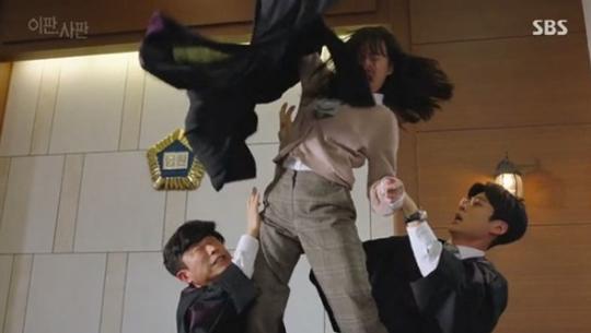 그렇다면 <이판사판>에서는 어떨까. 먼저 이 드라마 속에서 박은빈이 맡은 이정주라는 인물이 가진 괄괄함은 저 <청춘시대>의 송지원이라는 캐릭터와 다소 겹친다. 어딘지 허당기가 있어 보이고 판사로서 증거에 더 집중해야하지만 욱하는 성미를 드러내는 이정주 판사는 다소 비현실적인 느낌을 줄만큼 감정적이다. 물론 드라마가 캐릭터를 확실히 설명하려다보니 아동 성폭행범이 ‘성교육’을 했다는 뻔뻔한 증언 앞에 법복을 벗고 난동을 부리는 장면이 들어가게 됐지만 어쨌든 이 캐릭터가 우리가 생각하는 판사와는 확연히 다르다는 걸 그 장면은 보여줬다.