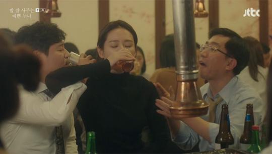 제목엔 밥이 들어가고 배경은 커피회사인데 술 마시는 장면이 제일 많이 나오는 드라마. <밥 잘 사주는 예쁜 누나>의 첫 인상을 요약하면 그렇다. 과잉노동과 성추행을 견뎌야 하는 직장, 이별을 통보한 순간에도 발렛비를 내달라는 치졸한 전 애인, “과년한 딸”의 ‘남부럽지 않은’ 결혼이 지상과제인 가족 등 서른다섯 윤진아(손예진)를 둘러싼 현실은 그 자체로 ‘술 권하는 사회’다.